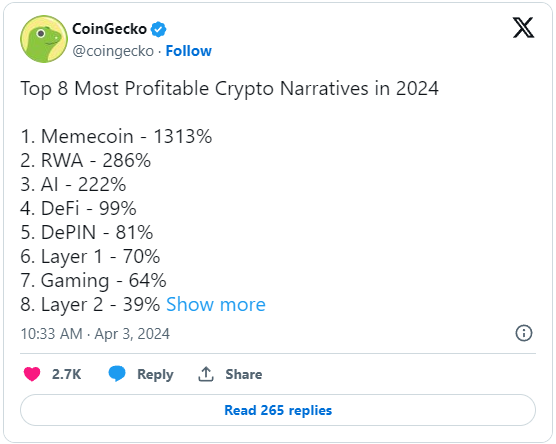 [BONUS INCLUDED] Here Are 8 Crypto Narratives Where Investors Profited 1,313% This Year So Far