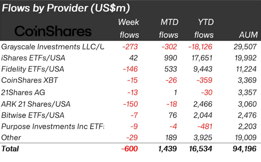 - Recent Data: CoinShares reports significant outflows in digital asset investment products, with $621 million outflows in Bitcoin last week.